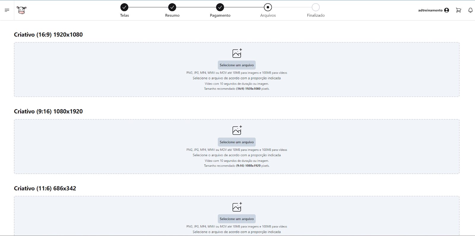Como enviar os criativos (ou seja, o vídeo do seu anúncio) para veicular ?