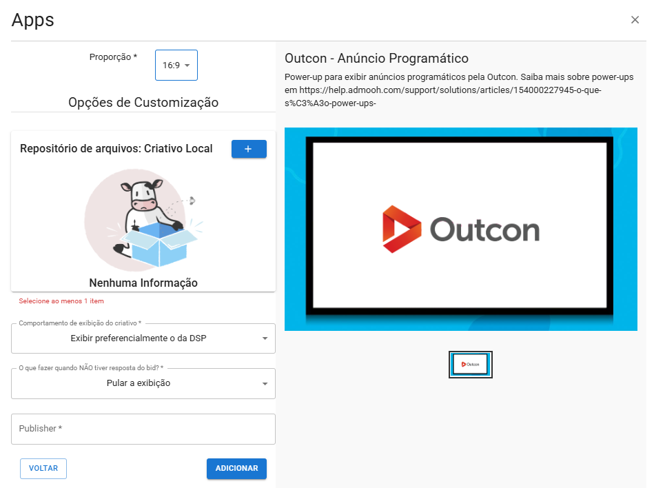 Preferencialmente pela DSP: O sistema dará prioridade para tentar exibir o anúncio programático da Outcon